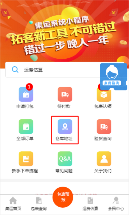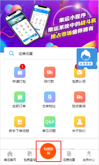 进入集运系统,点击【包裹预报】,即可下单。