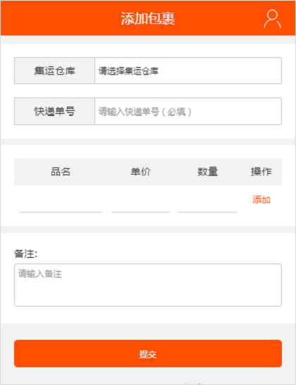 选择集运仓库,填写快递单号、货物品名、单价、数量等信息,确认无误后,点击【提交】即可完成下单。