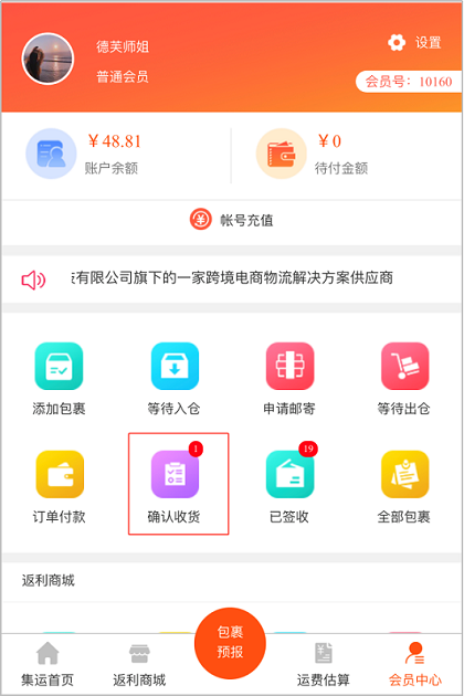 以上就是易境通集运系统的会员操作流程~